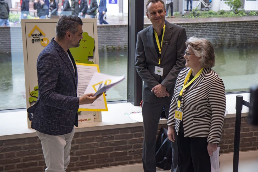 Niet alleen leden van de Vaste Kamercommissie hadden zich voor de aanbieding verzameld, ook schoven enkele Kamerleden en belangstellenden aan. Nadat de voorzitter, dhr. Tunahan Kuzu, de petieaanbieders had voorgesteld, gaven Gerdien Lassche, projectleider Week van het Gezin en Yvonne Koopman, voorzitter GezinsPlatform.NL een korte toelichting op de petitie en de vijf concrete voorstellen.